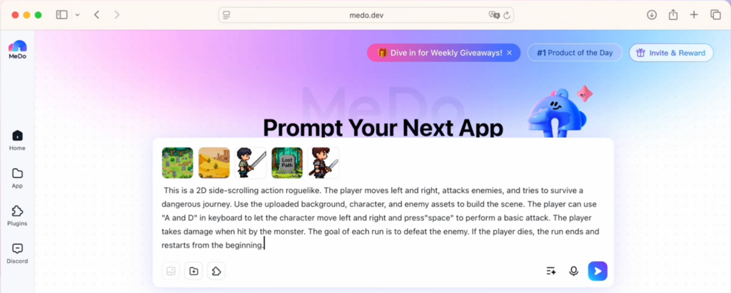MeDo as a substitute focuses on full product era. Fairly than producing fragments, it goals to generate working constructions that may evolve into actual purposes. This contains not solely video games, but additionally web sites, purposes, and digital merchandise. Its workflow facilities round pure language interplay: Describe the thought → generate construction → refine via iteration.