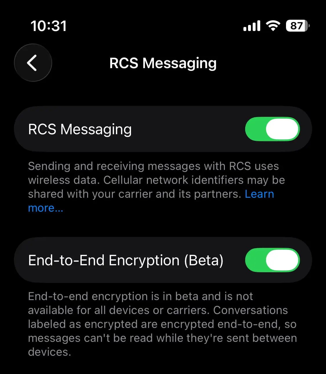 After putting in, go to Settings > Messages > RCS Messaging and ensure “Finish-to-Finish Encryption (Beta)” is enabled. It’s toggled on by default. Android telephones have to be working the most recent Google Messages beta (join here).