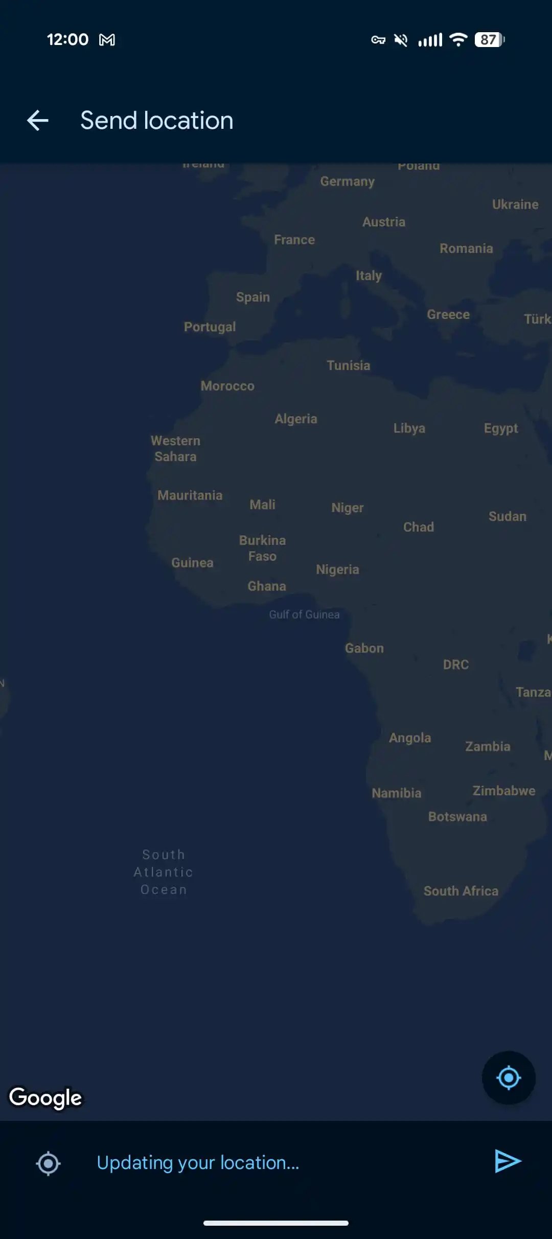 In the intervening time, opening the ‘plus’ menu in a dialog for “Location” simply sends your present place as a static Google Maps hyperlink.