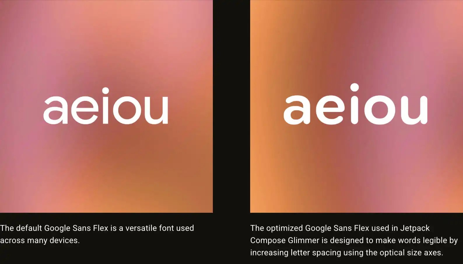 With textual content, Google Sans Flex’s optical dimension axis is used to enhance readability at that one-meter distance: