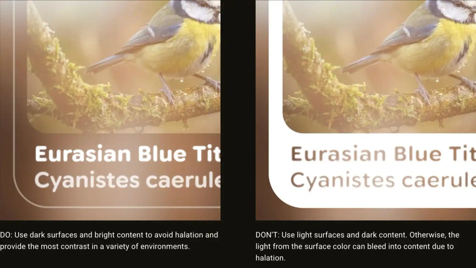 Google’s answer sees “surfaces use black to offer a legible ‘clear plate’ basis on your content material.” That is paired with a “new depth system that casts darkish, wealthy shadows to convey a way of occlusion and house.”