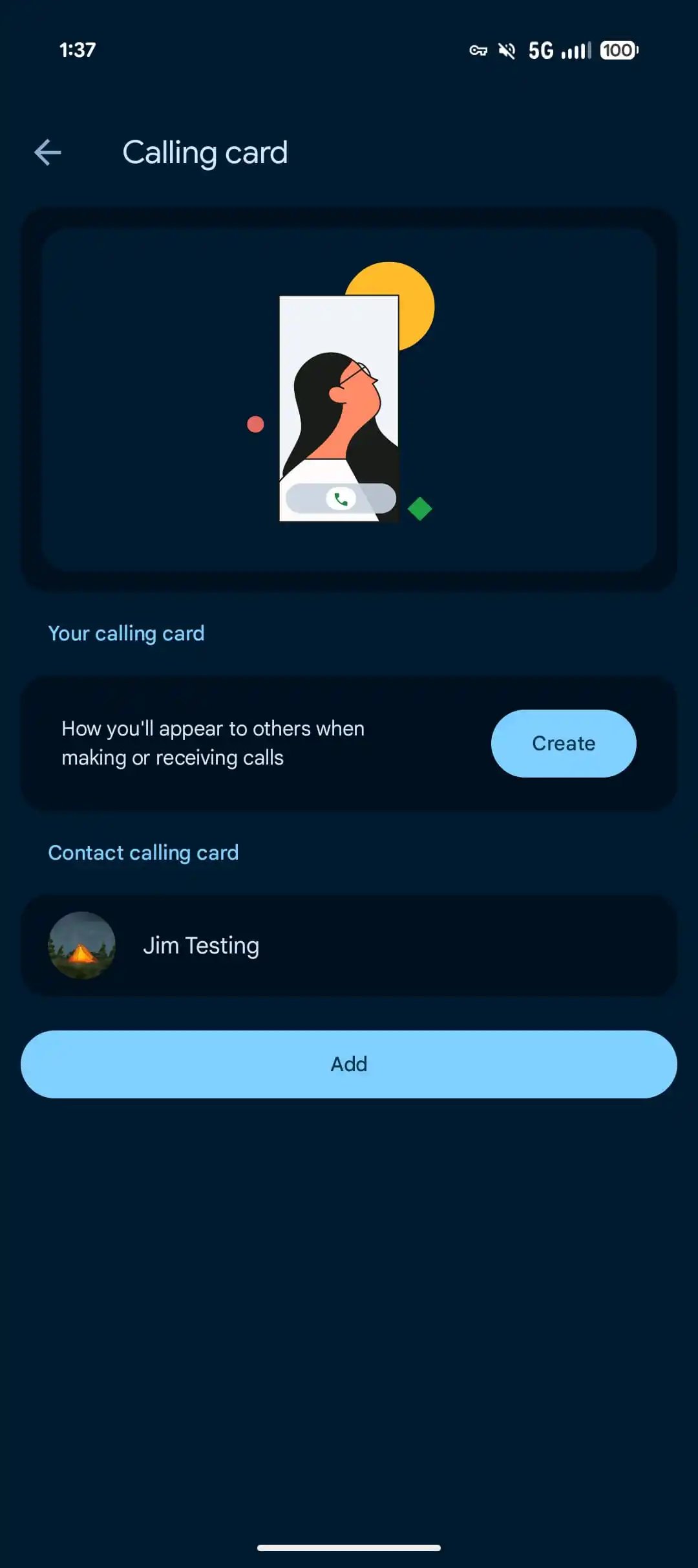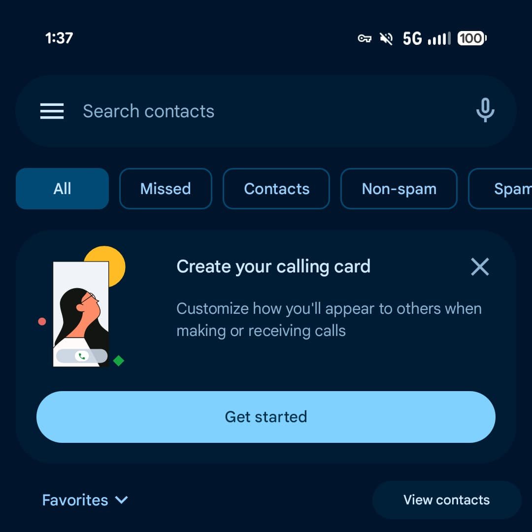 As soon as accessible, you’ll see a “Create your calling card” immediate on the prime of the Dwelling tab: “Customise the way you’ll seem to others when making or receiving calls.” You may also examine (and make modifications sooner or later) by going to Settings > Calling card.