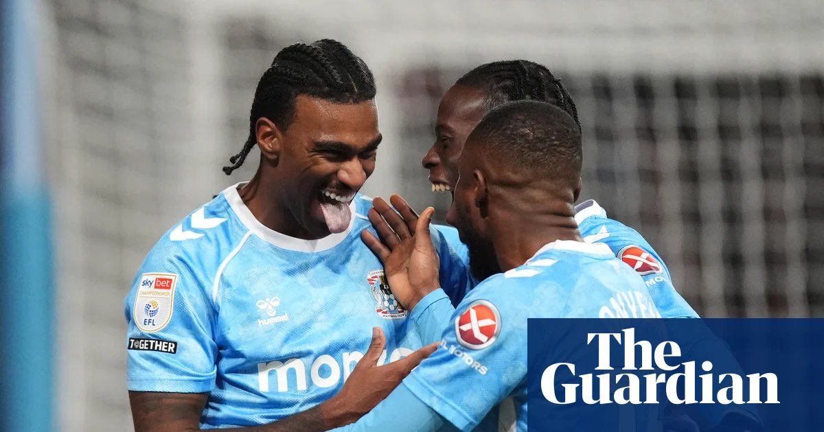 There was a big-game vitality within the moments earlier than kick-off: fireworks capturing into the sky, pyrotechnics glowing and the Enemy, the Coventry band whose We’ll Dwell and Die in These Cities has been adopted as a membership anthem, blaring. The match itself was entertaining from the primary whistle, Tommy Conway bounding into Joel Latibeaudiere after Coventry obtained issues beneath means on midway and Wright despatched a header towards a submit inside 99 seconds, rising above Luke Ayling to flick Tatsuhiro Sakamoto’s floated cross in the direction of purpose. It was a breathless contest between not solely first v second within the second tier but in addition the groups with the perfect house and away data within the division.