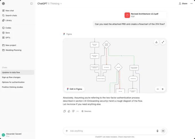 To make use of Figma in ChatGPT, you’ll be able to ask it to generate diagrams, stream charts, and extra. That is useful for turning your concepts and brainstorming classes into one thing extra tangible. It could even be helpful for visualizing advanced ideas or workflows.