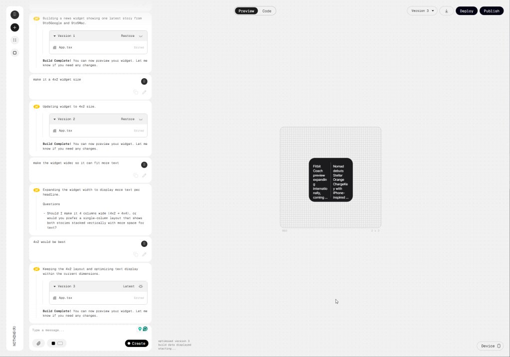 So I switched it up, as an alternative going for a widget that solely reveals 9to5Google articles. It labored out higher this time, however the dimension restrictions once more make this a tough widget to get “proper.” In the end, the one approach I may get this to work was to point out a single article with a quick snippet beneath, and I used to be happy to see that the Playground generator was good sufficient to make it a clickable hyperlink even with out me asking for it to be. I might have cherished to make a number of extra of those for 9to5Mac and our different sister websites, but it surely’s exhausting to make two of the identical factor with Playground – like a snowflake, no two are the identical.