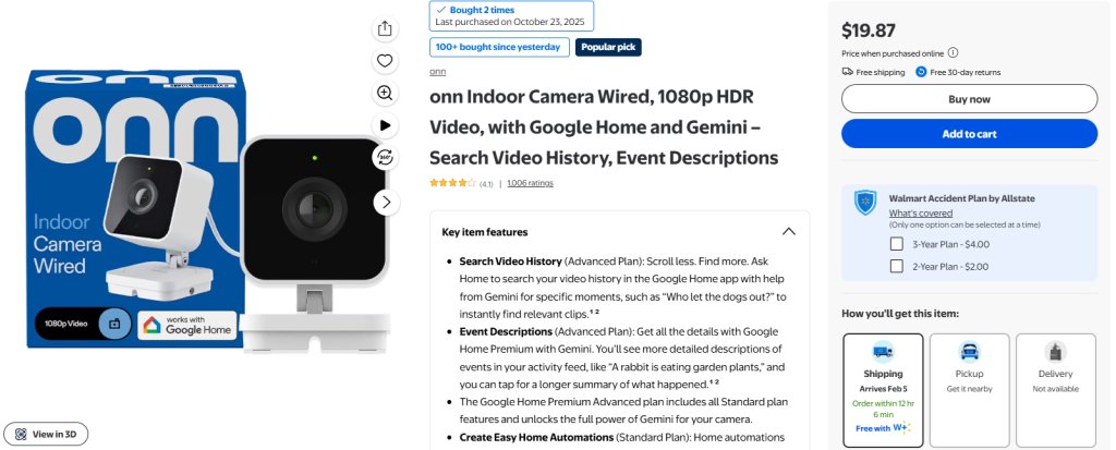 The Walmart Onn Indoor Camera (wired) launched final yr for the measly value of $23. The digicam was the primary to combine with Google Dwelling instantly, successfully performing as a Google Nest digicam for 1 / 4 of the value tag. And it’s been cheaper than that too, having been offered for round $10 again round Black Friday once we revealed our hands-on protection.