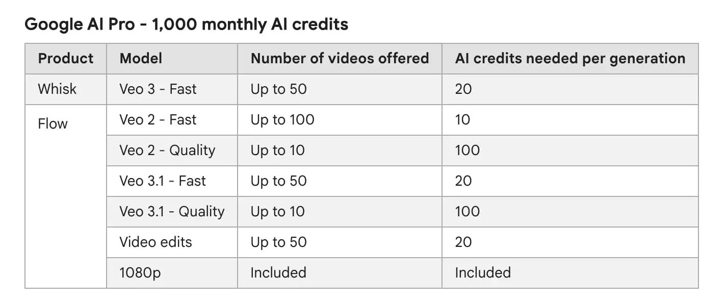 With this new plan, Google has launched the idea of AI Credits that apply to Whisk and Stream. Check with the next desk: