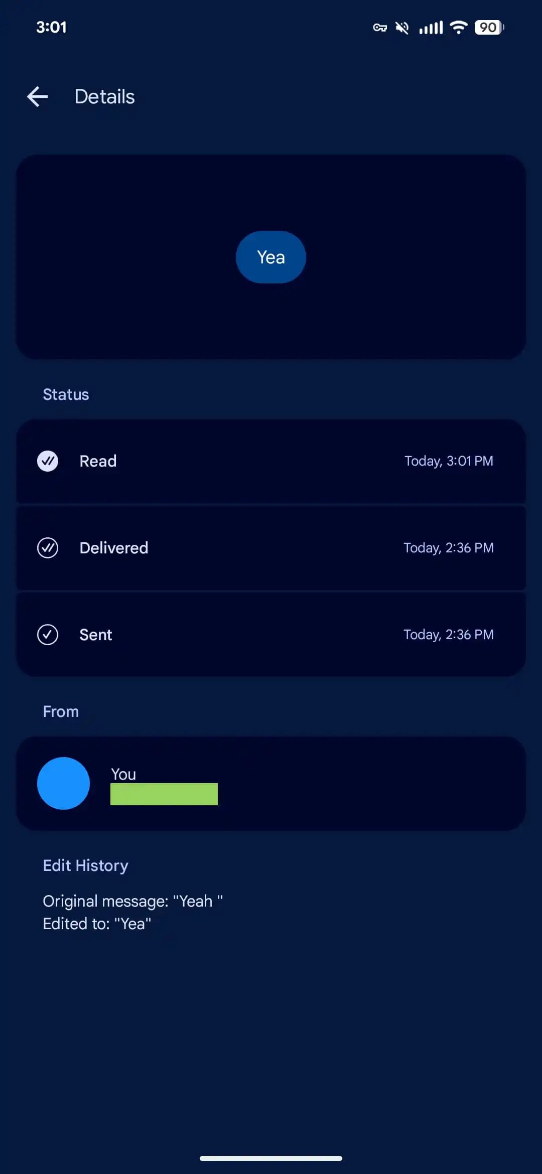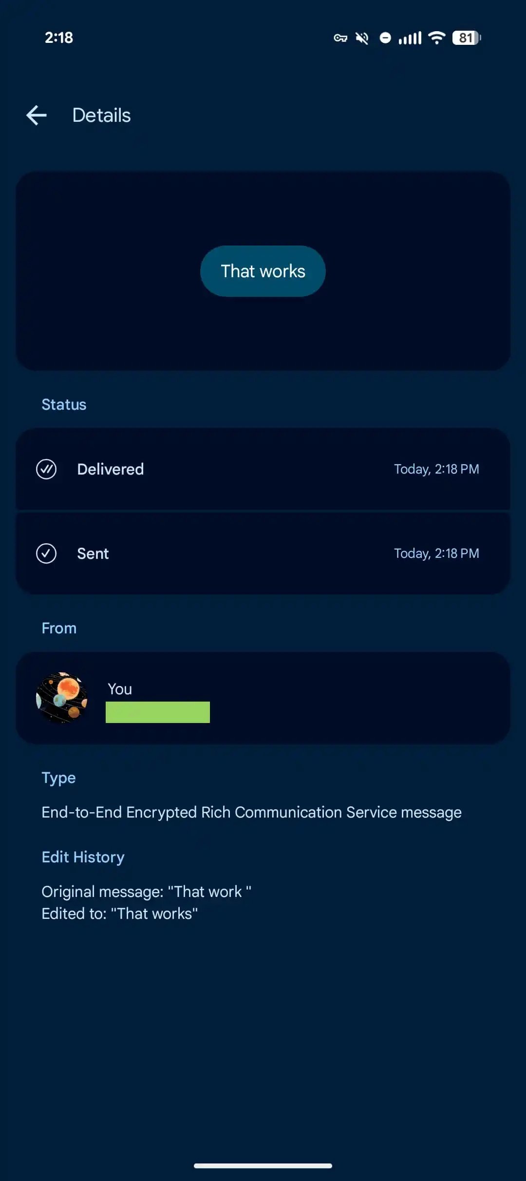 RCS edit historical past is as soon as once more out there. Lengthy-press on an edited message to “View particulars.”